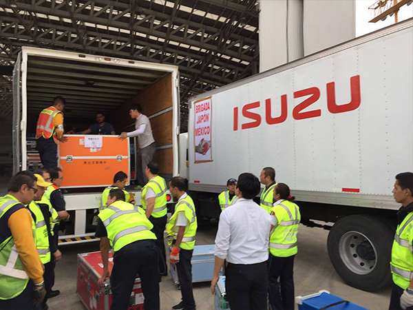 Un grupo de 70 brigadistas provenientes de Narita, Japón, arribaron el 21 de Septiembre a la Ciudad de México para apoyar en las tareas de búsqueda y rescate tras el sismo de 7.1 registrado el pasado 19 del mismo mes. Isuzu Motors de México envió 4 camiones para recibir la ayuda Japonesa y trasladarlos a su destino.