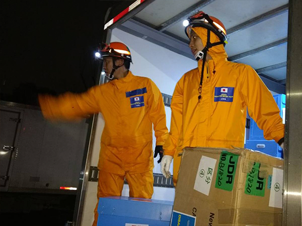 Un camión de ayuda por ayuda Japonesa:
